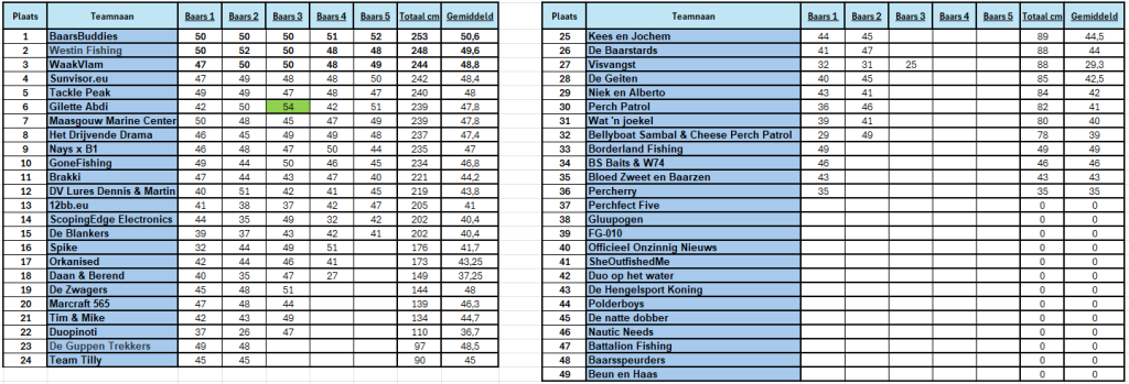 Hierbij alvast de deelnemerslijst; deze teams gaan de strijd aan om de 5 grootste baarzen!